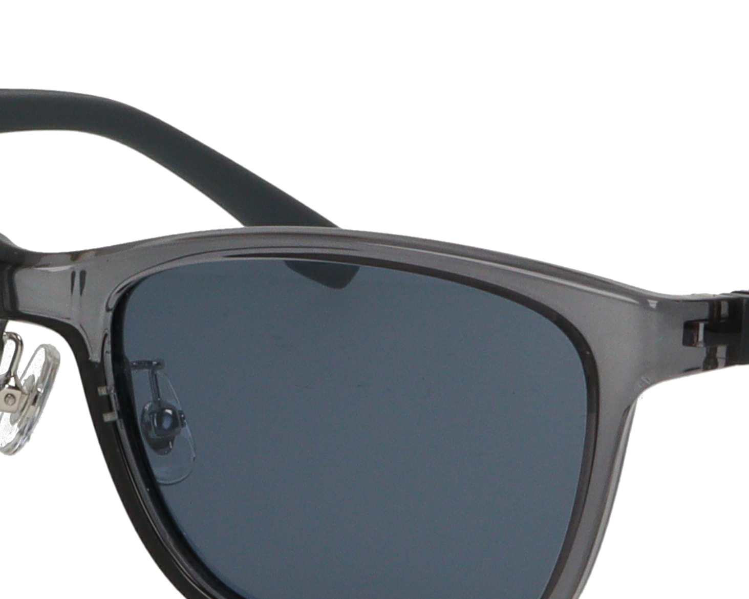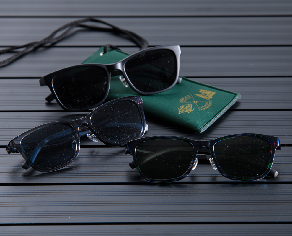 フロント上部のカットラインとは対照的に、美しい曲線が織りなすクラシカルなウェリントンタイプのサングラス。シャープな印象を際立たせるマットな質感のブラック、抜け感のあるクリアグレー、そして遊び心のあるブラックグリーンデミの3色展開です。
