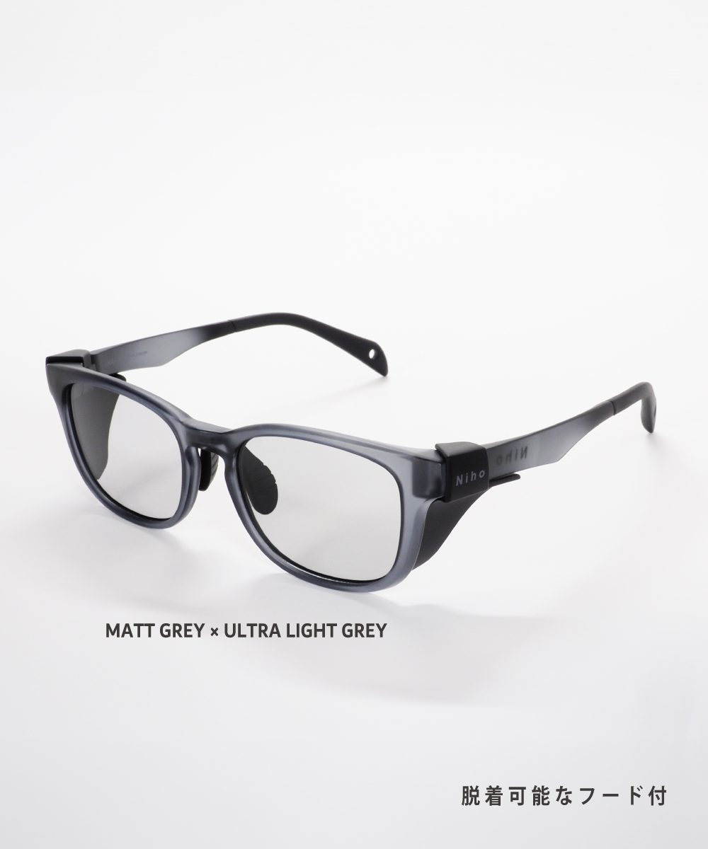 Niho|-HAKU- エッジが効いたシャープなウエリントン形状/スモークグレーマット3/日本製”超”薄色偏光レンズ採用